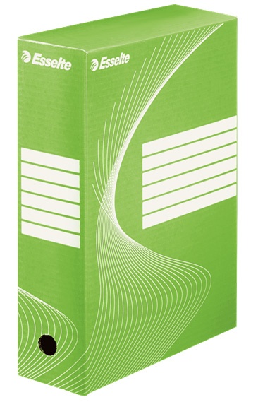 Archivační krabice se zdvojenými postranními stěnami. Určeno pro obsah běžného pořadače 75/80 mm nebo 2 pořadačů šíře hřbetu 50mm. Vyrobeno ze 100% recyklovatelné vlnité lepenky. Hřbetní otvor pro snadné uchopení je na delší i kratší straně, což umožňuje dva způsoby uložení podle výšky police. V barvách značky Esselte. Krabice je dodávaná v rozloženém stavu, sestavení je velmi snadné a rychlé. V barvách značky Esselte.