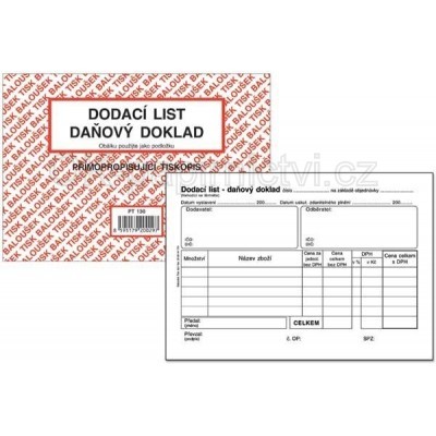 Baloušek dodací list - daňový doklad A6 samopropis PT130
