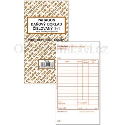 Baloušek paragon daňový doklad 1+1 číslovaný samopropis PT012Skladem35 Kč/ ks29 Kč bez DPH