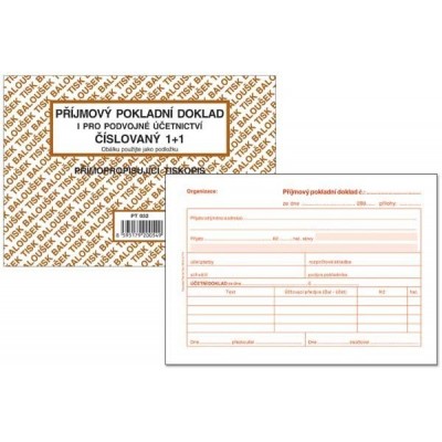 Příjmový pokladní doklad i pro podvojné účetnictví, samopropis, číslovaný.