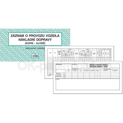 Záznam o provozu vozidla nákladní dopravy (alonž) oboustranný.