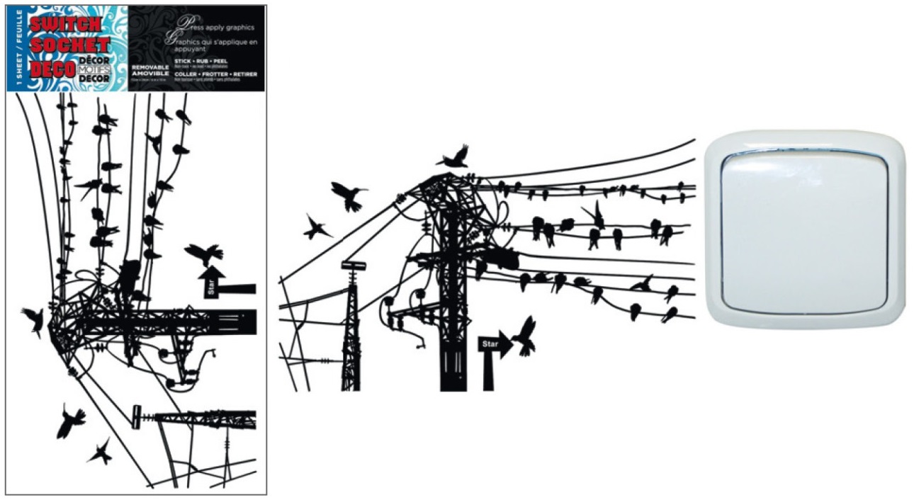 Vybraný motiv vystřihněte včetně podkladového papíru a krycí fólie. Odstraňte podkladový papír a přilepte obrázek na rovný čistý a suchý povrch.