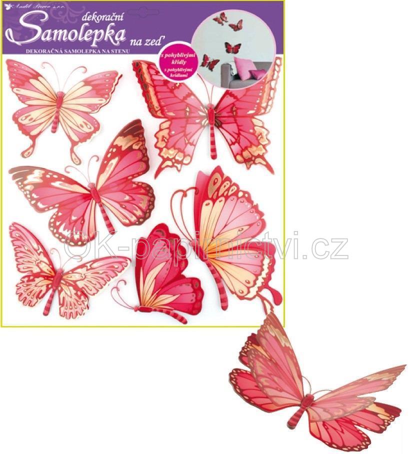Dekorace na zeď motýli růžoví - 3D nálepka