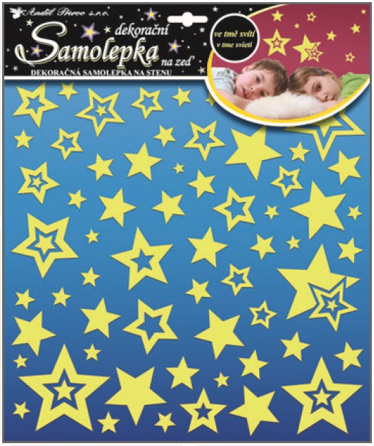 Samolepky na zeď hvězdičky s glitry svítící ve tmě 31x29cm