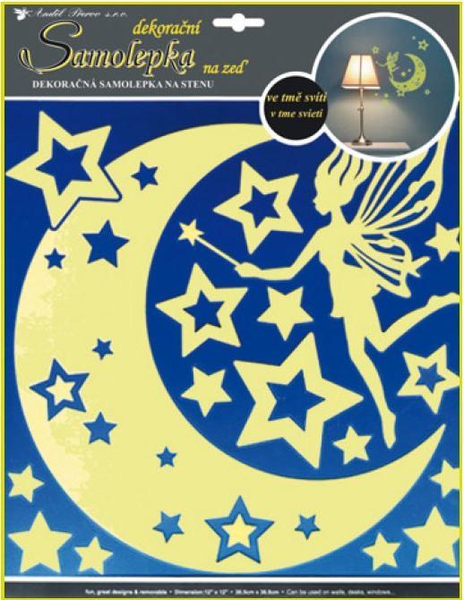 Samolepky na zeď víla a hvězdy svítící ve tmě 31 x 29 cm