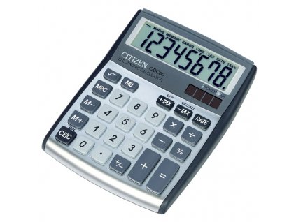Elegantní kompaktní stolní kalkulátor s 8místným nakloněným displejem a obchodními funkcemi.