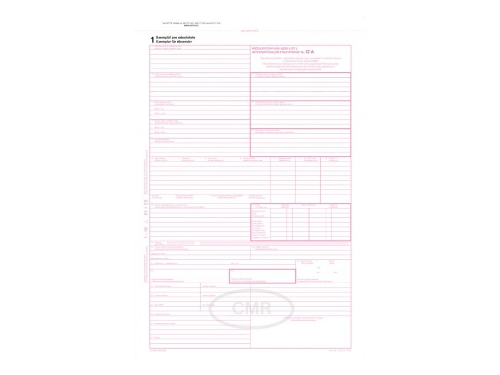 Mezinárodní nákladní list CMR A4Skladem16 Kč/ ks13 Kč bez DPH