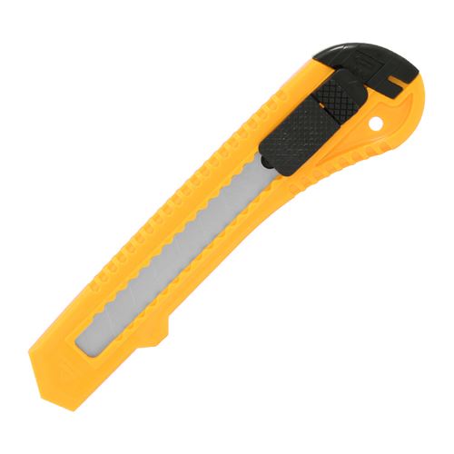 Velký ořezávací nůž s manuálně nastavitelnou vysouvací čepelí šířky 18 mm z ušlechtilé oceli, tělo nože z kvalitního PVC.