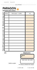 Paragon obchodní, neboli úzký. Samopropisující tiskopis, číslovaný, blok 2 x 50 listů, formát 7,5 x 15 cm. Sytě oranžová obálka.