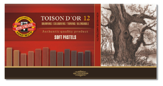 Sada suchých uměleckých prašných pastelů Toison D'or od výrobce Koh-i-noor mají vynikající kreslící vlastnosti a světlostálost. Jsou používány pro tenčí a obrysové linie. Jako plnivo se používá mletá pemza.