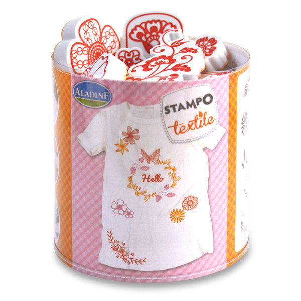 Tip: K razítkům Stampo Textile byste mohli využít barevné razítkové polštářky na textil i barevné razítkové polštářky s barvou na papír.