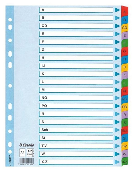 Rozdružovač A4 20 listů abecední rejstřík Mylar EsselteSkladem172 Kč/ ks142 Kč bez DPH