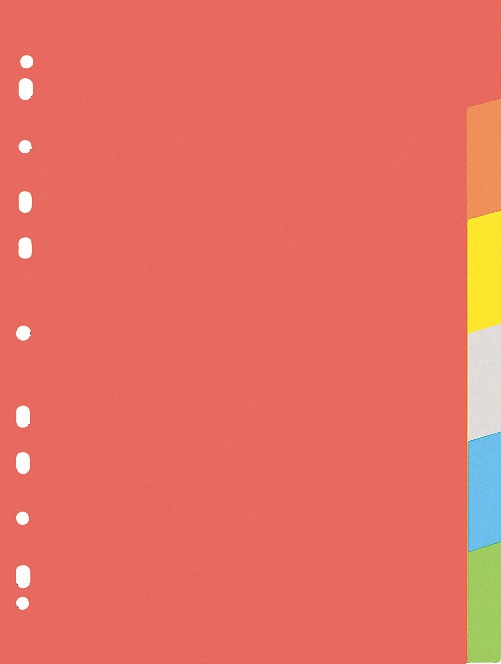 Papírový barevný rozlišovač vhodný do pákových, dvoukroužkových i čtyřkroužkových pořadačů formátu.