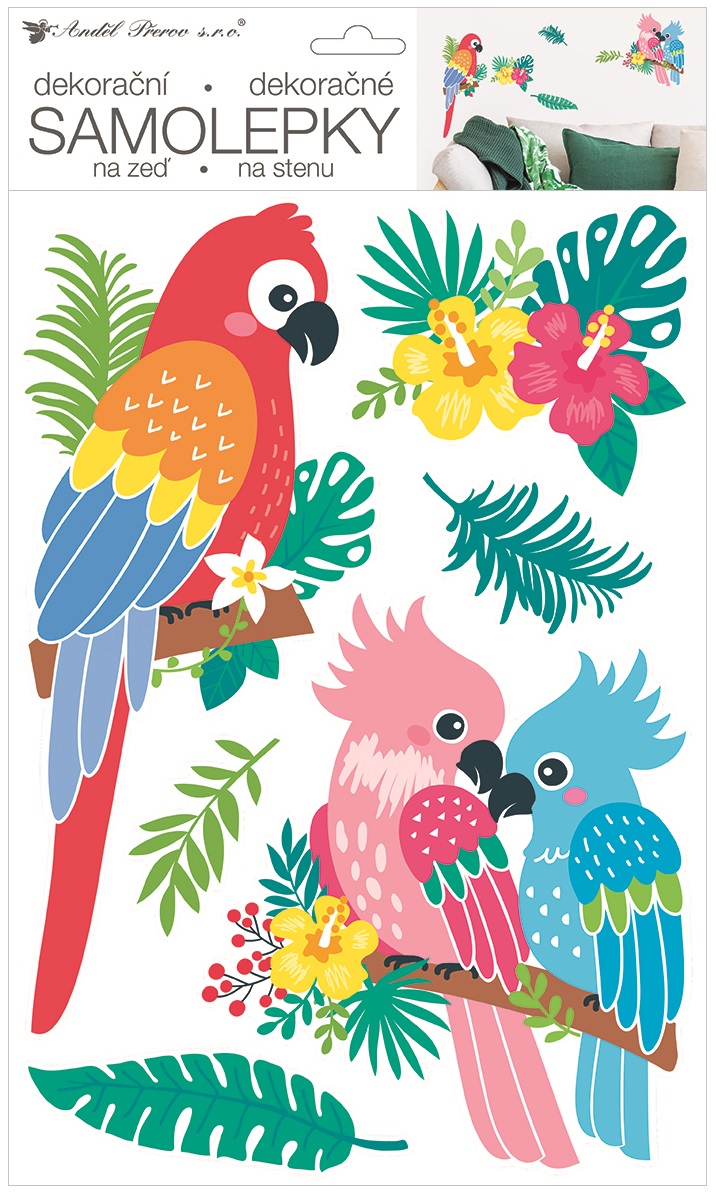 Samolepka na zeď papoušci 24 x 42 cmSkladem do 7 dní41 Kč/ ks34 Kč bez DPH