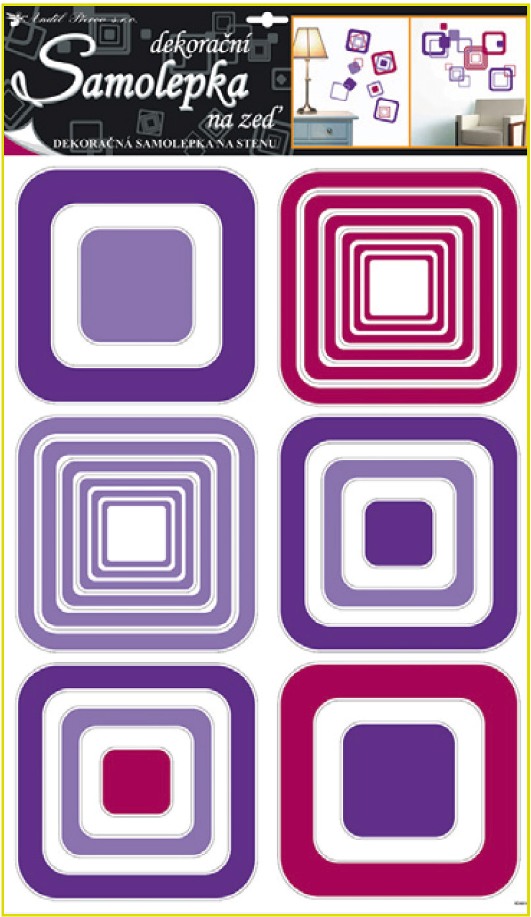 Samolepky na zeď čtverce fialové, 60x42cmSkladem do 7 dní142 Kč/ ks117 Kč bez DPH