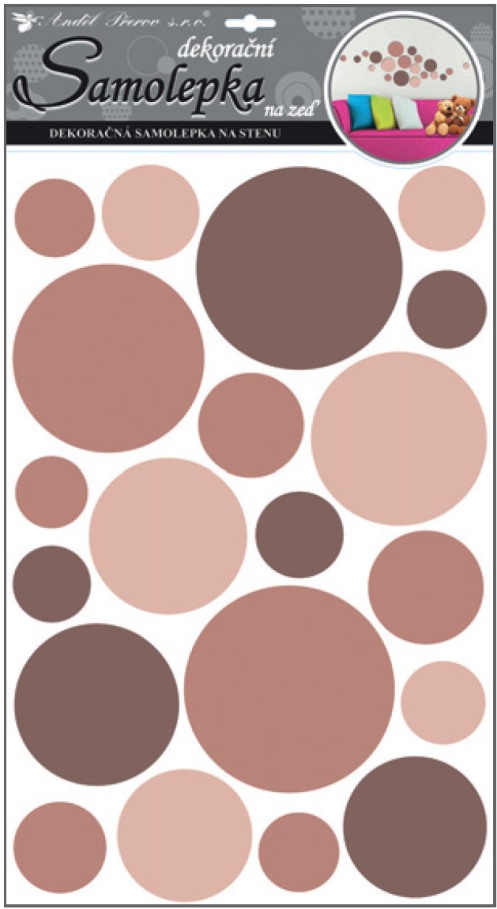 Samolepky na zeď kolečka hnědá 50x32 cm