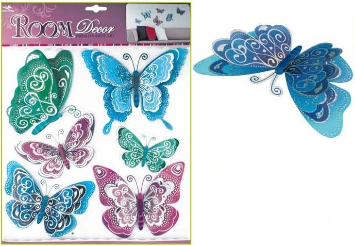 Samolepky na zeď motýli modrofialoví s hologramem 30,5x30,5 cm