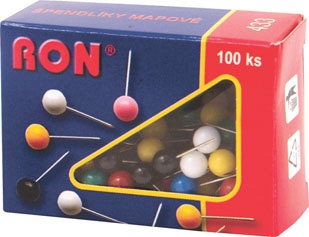 Špendlíky mapové 100 ks barevné RONSkladem61 Kč/ ks50 Kč bez DPH