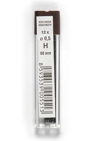 Tuhy do pentilky H - Kohinoor Náplně - tuhy - do mikrotužky 0,5mm, tvrdost H, 12ks v plastové krabičce polymerová tuha celý popis